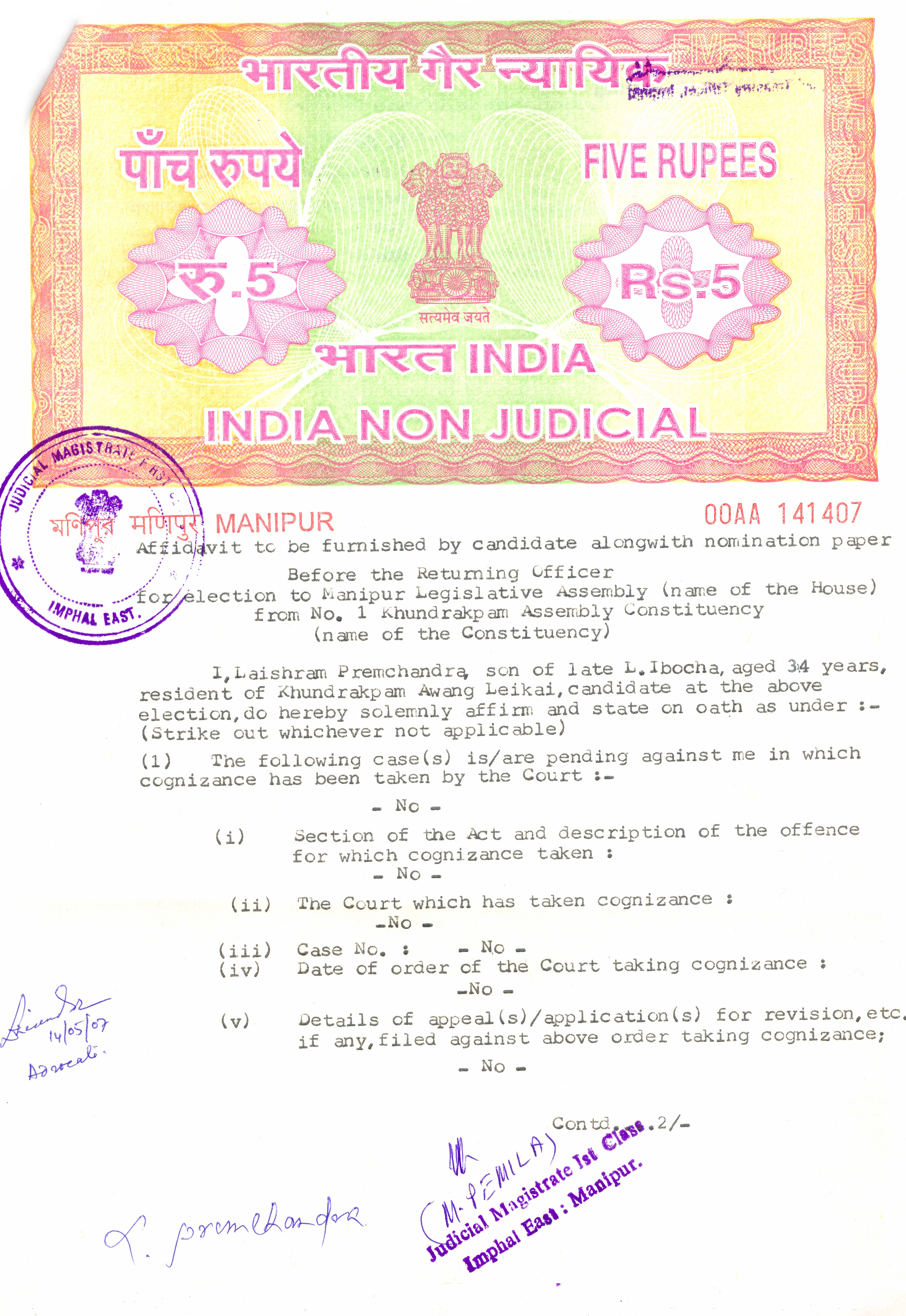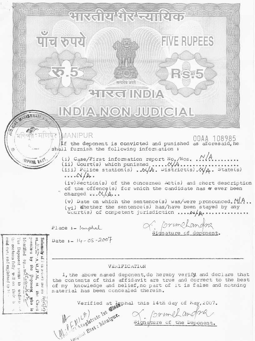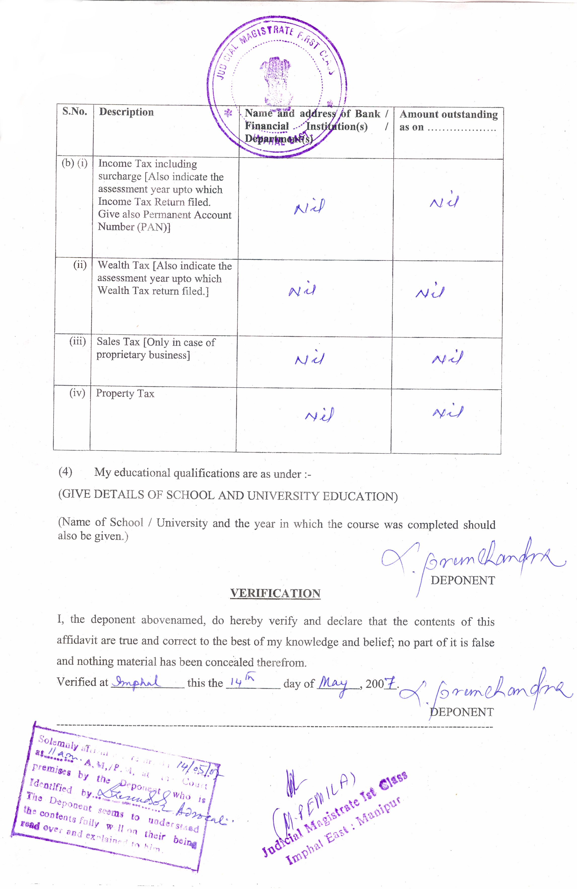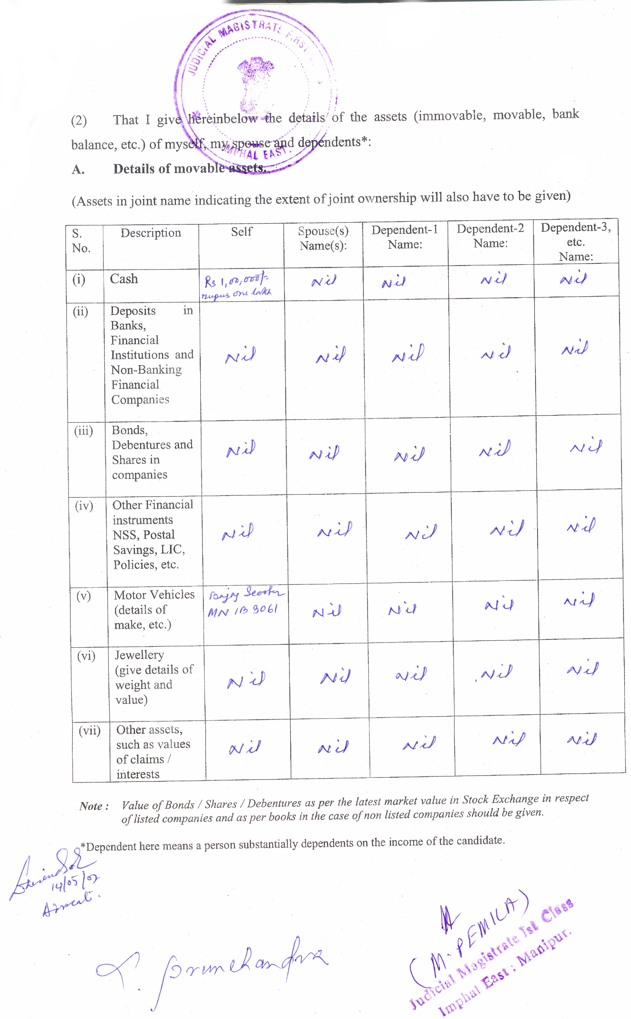 Bye Election 2009 - Affidavits filed by Assembly Candidate |