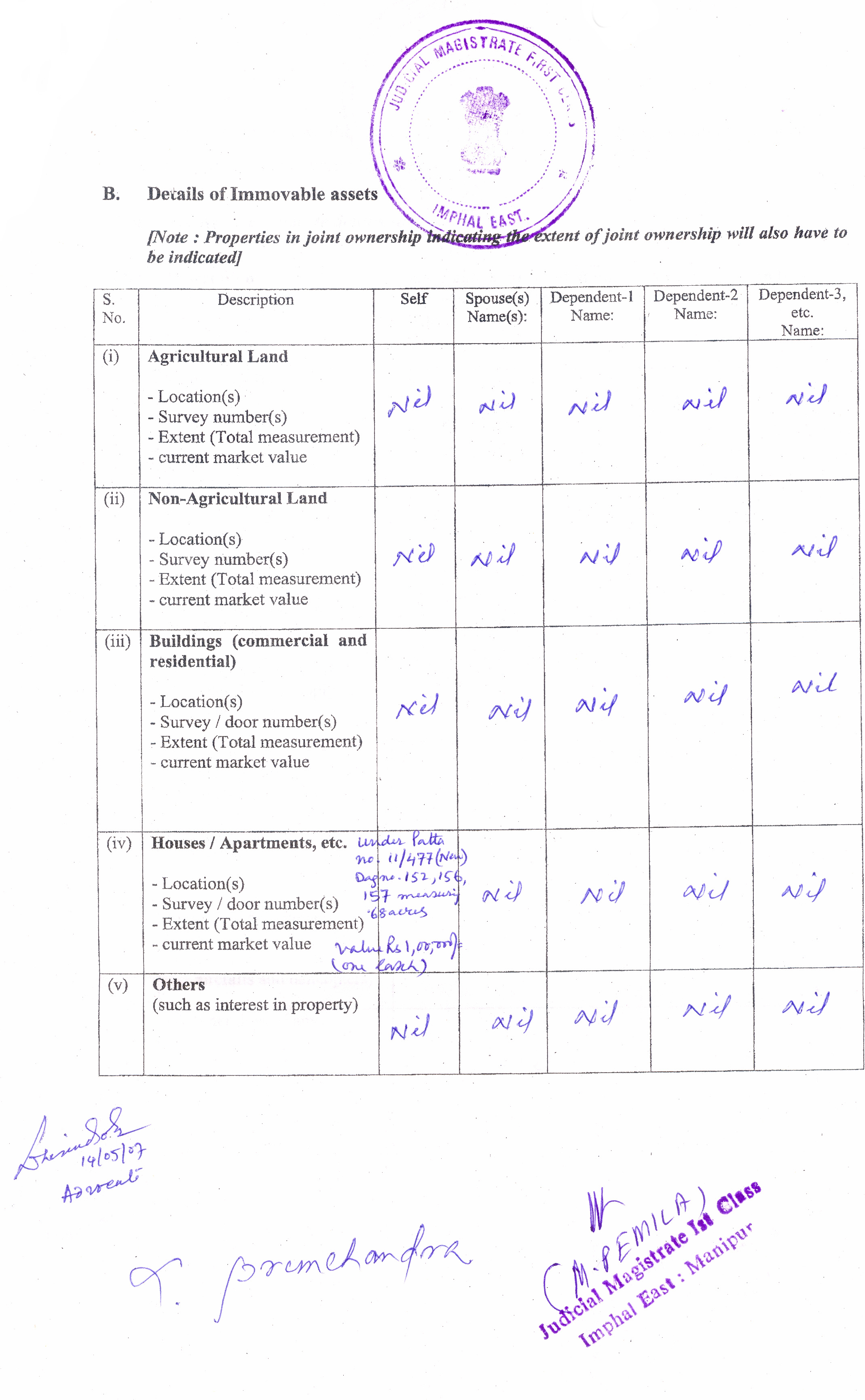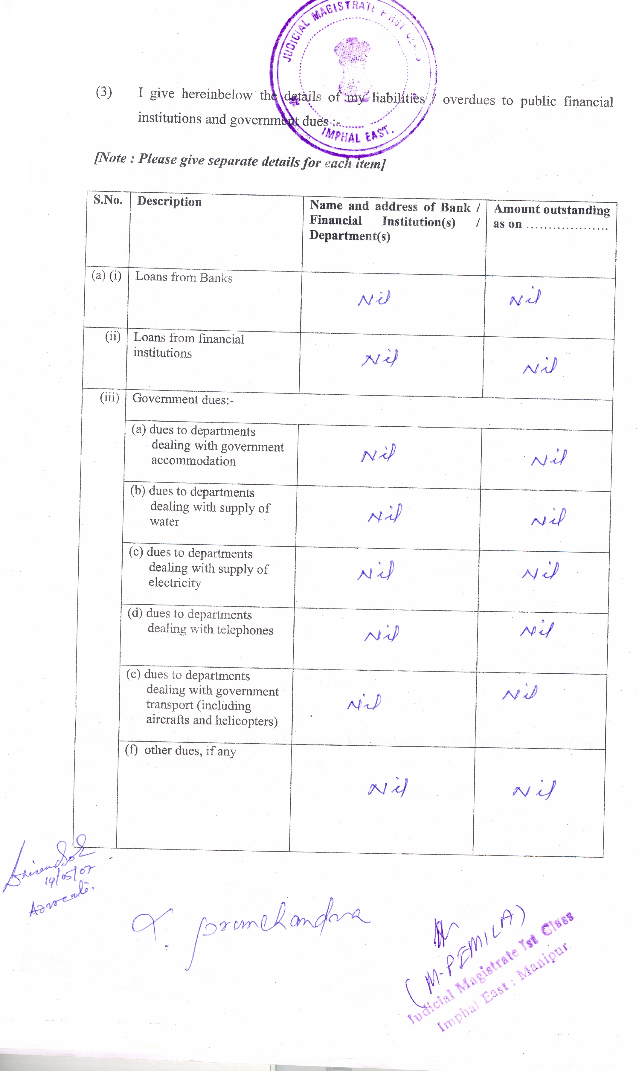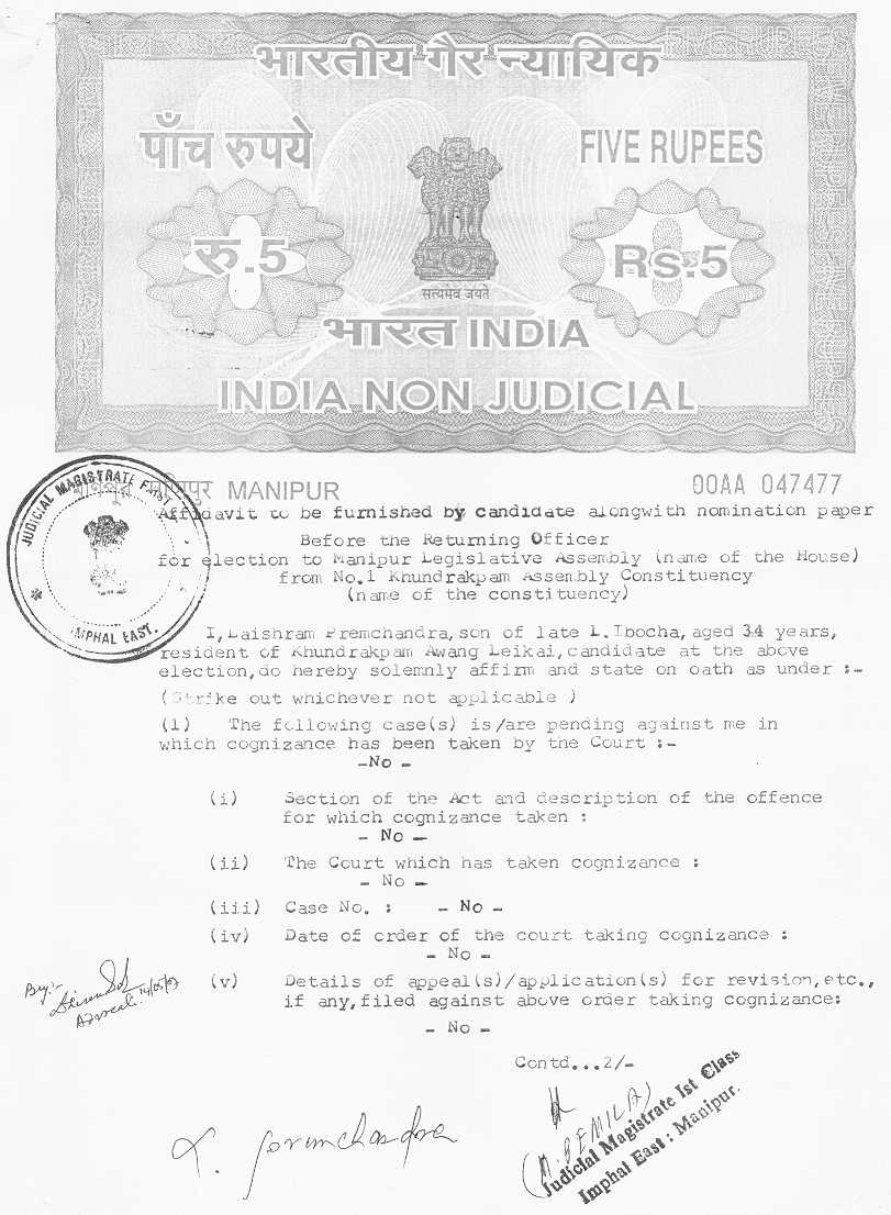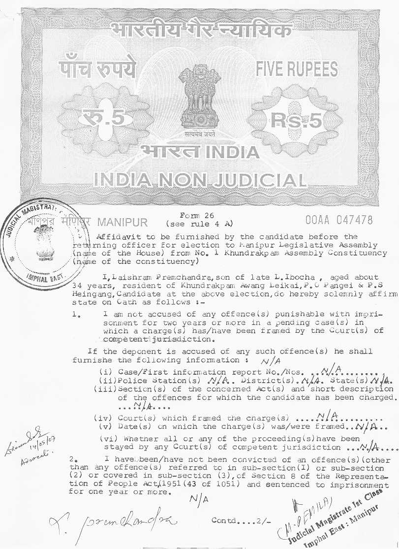 Bye Election 2009 - Affidavits filed by Assembly Candidate |