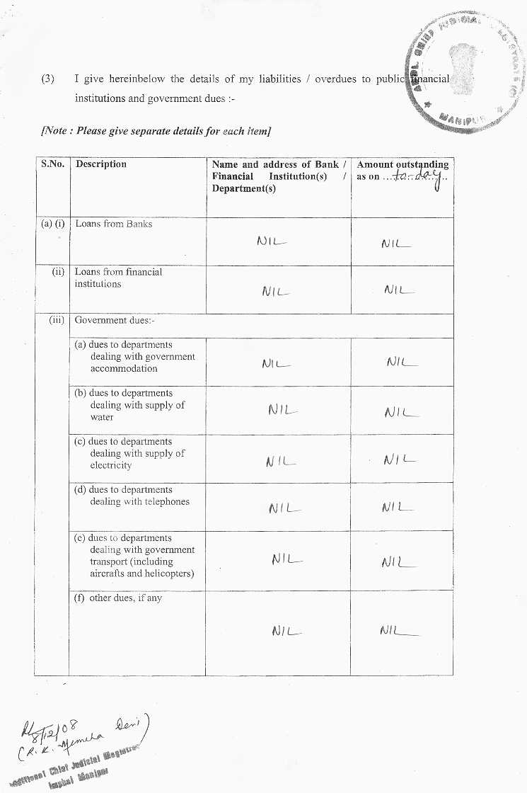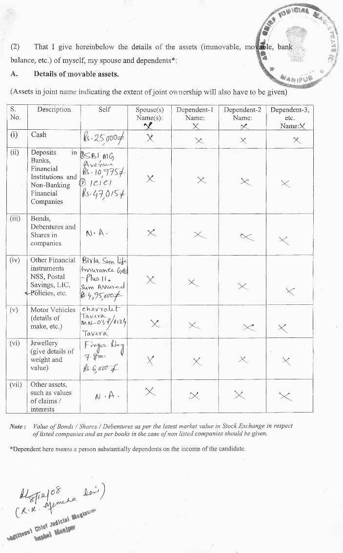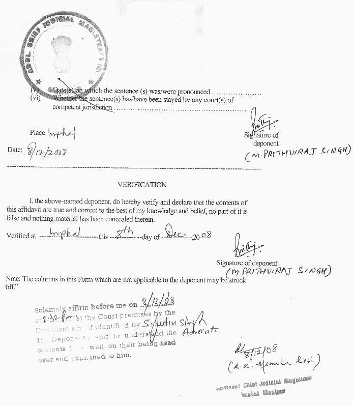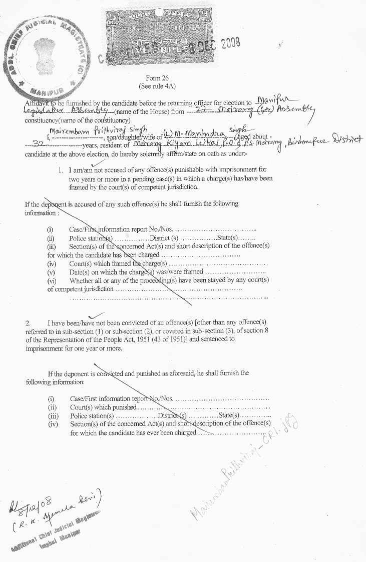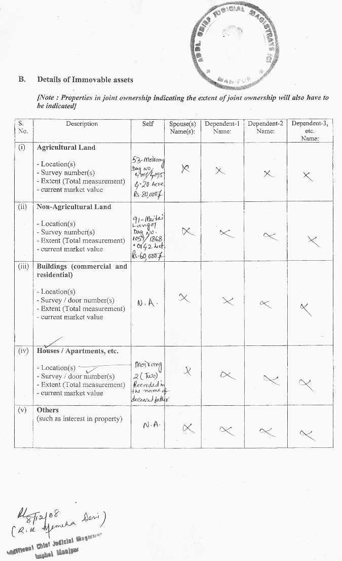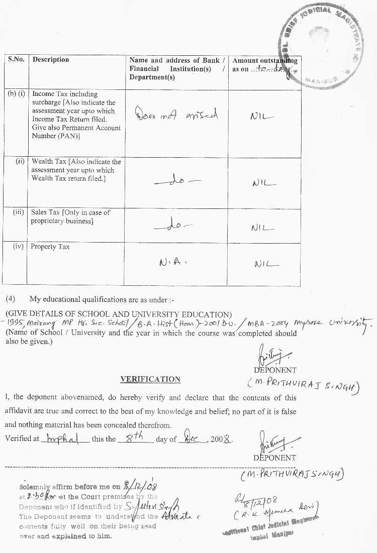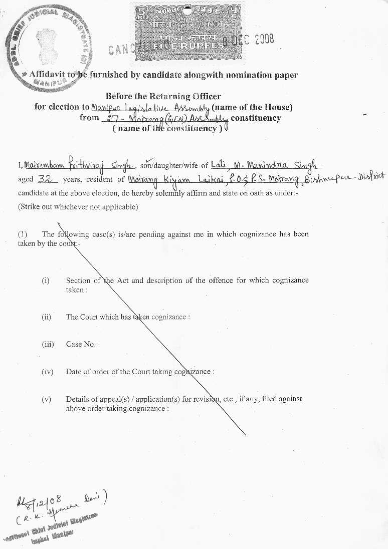 Bye Election 2009 - Affidavits filed by Assembly Candidate |