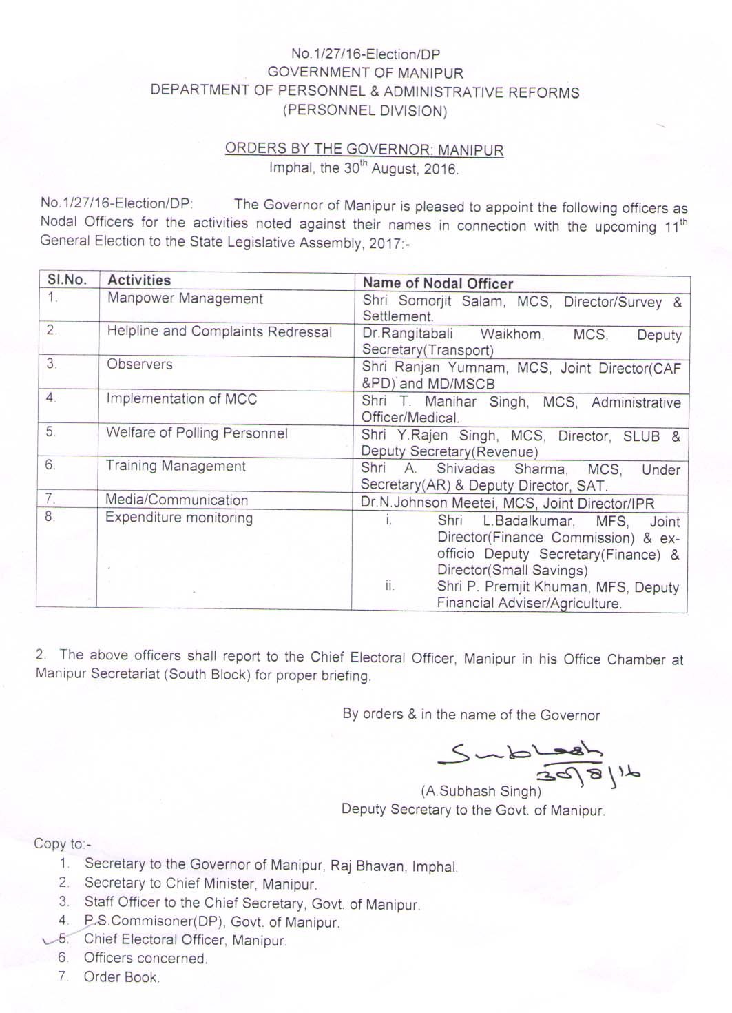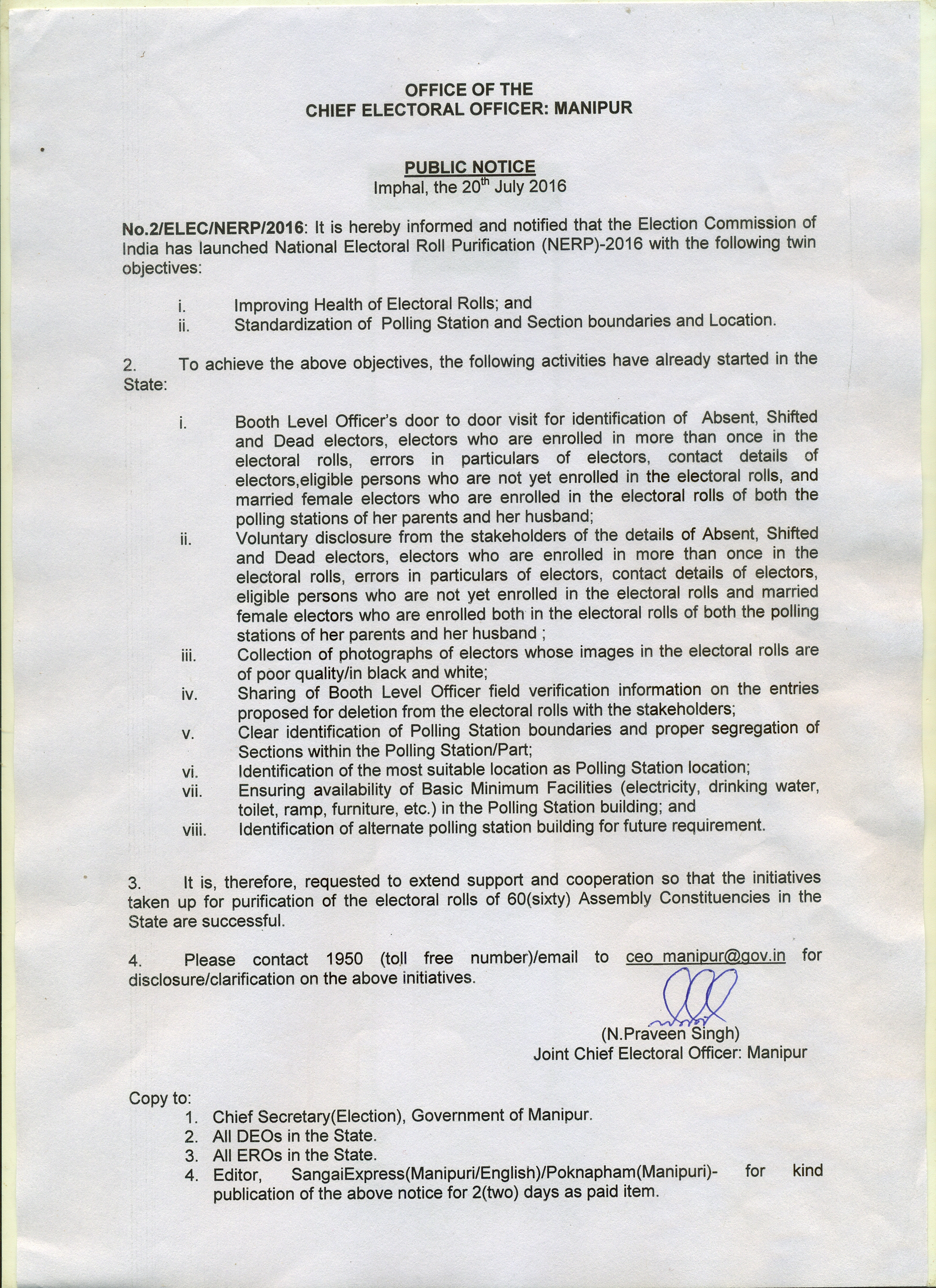 SSR-2016 Hearing Notification on 5th Nov 2016 for ERO Kangpokpi |