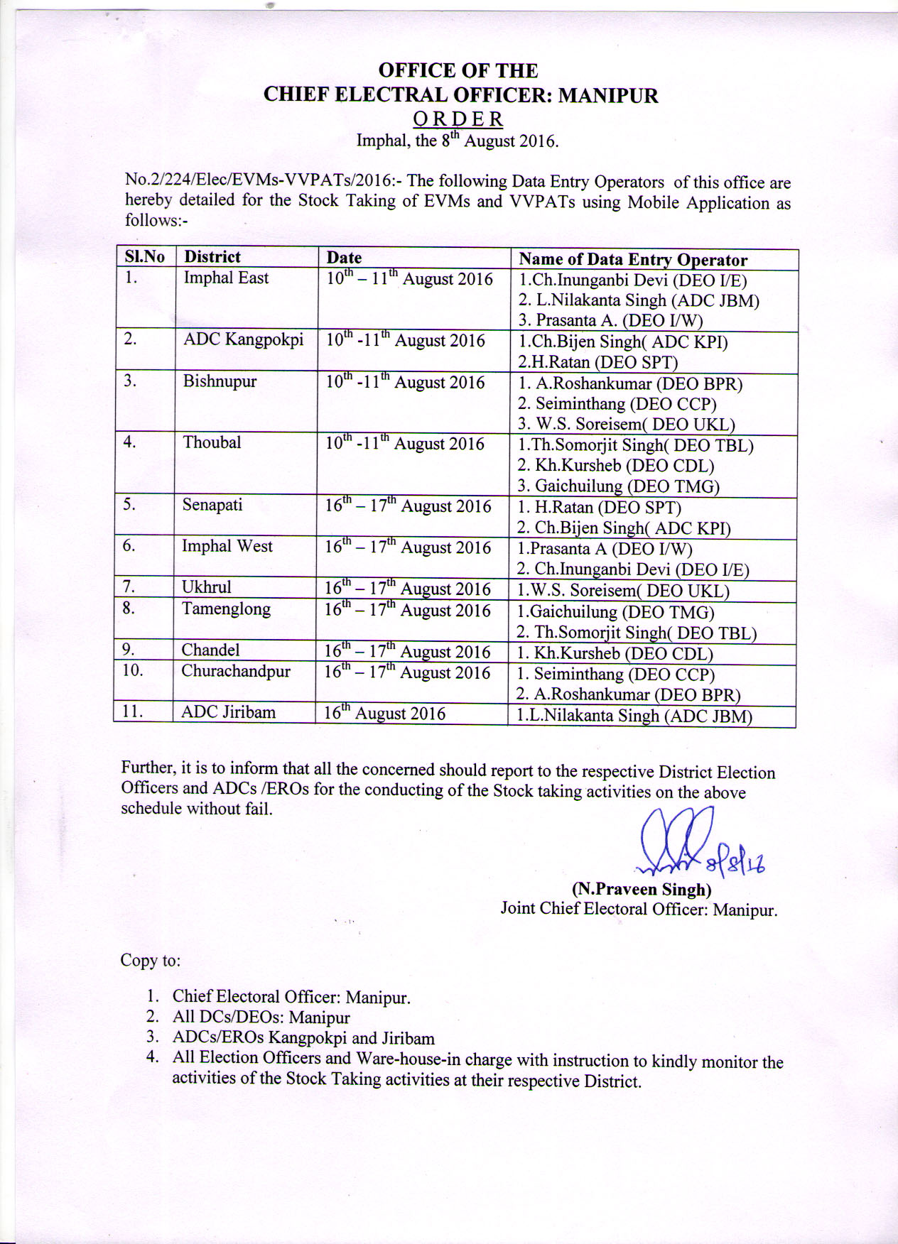 Order for Stock Taking of EVMs and VVPATs using Mobile App |