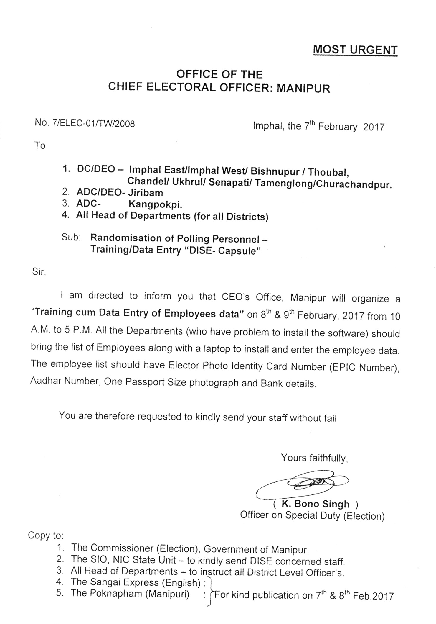AADHAR Enabled Bio-matric Attendance System (AEBAS) in Election Department, Manipur |